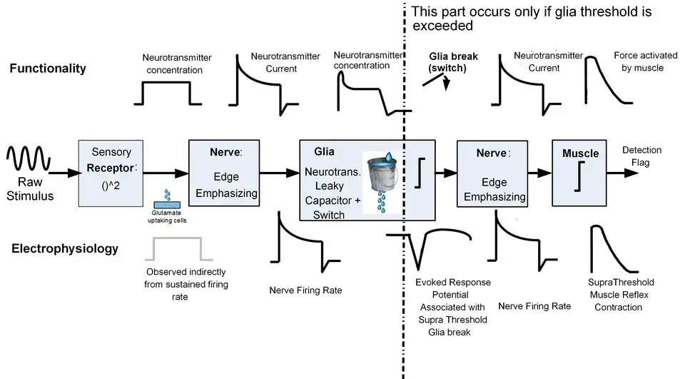 - The switch of the nervous system: Based on the evidence listed below, it has been recently conjectured in,[37] that macro glia (and astrocytes in particular) act both as a lossy neurotransmitter capacitor and as the logical switch of the nervous system. I.e., macroglia either block or enable the propagation of the stimulus along the nervous system, depending on their membrane state and the level of the stimulus.