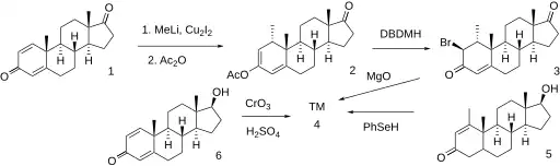 - ↑ US patent 4871482, Klaus N, Hanfried A, "Process for the preparation of 1-methylandrosta-1,4-diene-3,17,dione, and the novel intermediates for this process", issued 1989-10-03, assigned to Schering AG