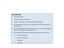 - ↑ 28.0 28.1 Kurz EU, Lees-Miller SP (Aug–Sep 2004). "DNA damage-induced activation of ATM and ATM-dependent signaling pathways". DNA Repair. 3 (8–9): 889–900. doi:10.1016/j.dnarep.2004.03.029. PMID 15279774.