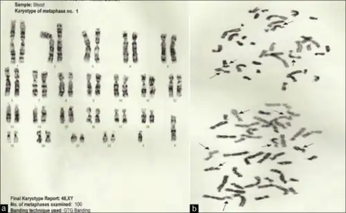 - ↑ Iourov IY, Vorsanova SG, Liehr T, Kolotii AD, Yurov YB (July 2009). "Increased chromosome instability dramatically disrupts neural genome integrity and mediates cerebellar degeneration in the ataxia–telangiectasia brain". Human Molecular Genetics. 18 (14): 2656–69. doi:10.1093/hmg/ddp207. PMID 19414482.