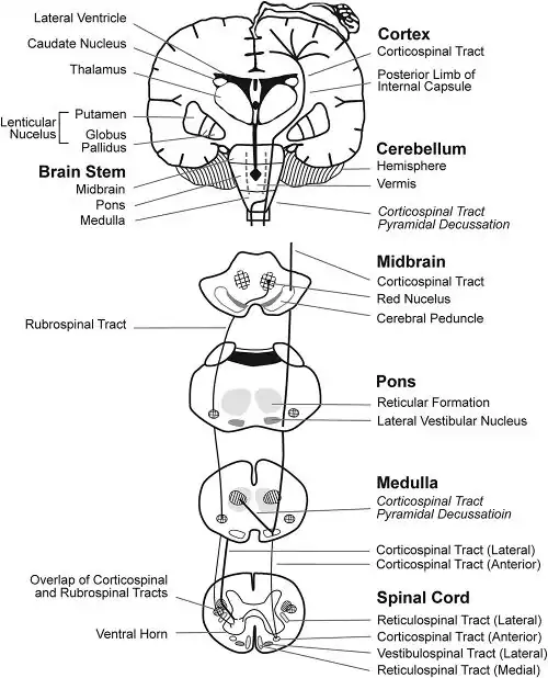 - ↑ 2.0 2.1 2.2 Cheney, PD (1997). "Pathophysiology of the corticospinal system and basal ganglia in cerebral palsy". Mental Retardation and Developmental Disabilities Research Reviews. 3 (2): 153–167. doi:10.1002/(SICI)1098-2779(1997)3:2<153::AID-MRDD7>3.0.CO;2-S.
