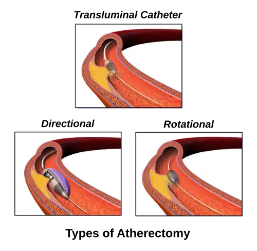 Atherectomy is used to treat narrowing in arteries caused by peripheral artery disease and coronary artery disease.[1][2]