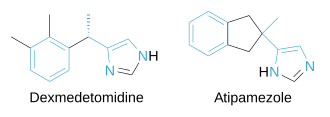 - 1 2 3 Vacher B, Funes P, Chopin P, Cussac D, Heusler P, Tourette A, et al. (October 2010). "Rigid analogues of the α2-adrenergic blocker atipamezole: small changes, big consequences". Journal of Medicinal Chemistry. 53 (19): 6986–6995. doi:10.1021/jm1006269. PMID 20809632.