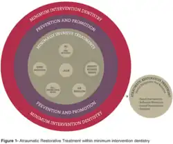 - 1 2 Holmgren CJ, Roux D, Doméjean S (January 2013). "Minimal intervention dentistry: part 5. Atraumatic restorative treatment (ART)--a minimum intervention and minimally invasive approach for the management of dental caries". British Dental Journal. 214 (1): 11–8. doi:10.1038/sj.bdj.2012.1175. PMID 23306489. S2CID 22970086.