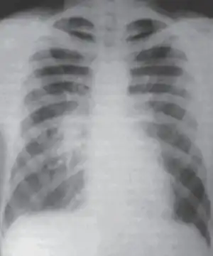 Chest X-rays often show a lung infection before physical signs are observable.[11] This is occult pneumonia. In general, occult pneumonia is rather often present in patients with pneumonia and can also be caused by Streptococcus pneumoniae, as the decrease of occult pneumonia after vaccination of children with a pneumococcal vaccine suggests.[18][19]