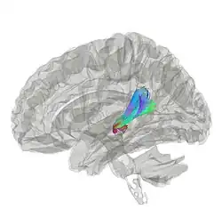 The acoustic radiations or auditory radiations are structures found in the brain, in the ventral cochlear pathway, a part of the auditory system.[1][2] Acoustic radiation arising in the medial geniculate nucleus and end in primary auditory cortex (transverse temporal gyri). Lesions to the auditory radiations could be a cause of cortical deafness.[3]