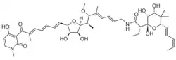Aurodox (X-5108, goldinomycin) is a naturally occurring polyketide antibiotic drug, first isolated in 1972 from Streptomyces goldiniensis. It is active against various species of Gram-positive bacteria through inhibition of the type III secretion system (T3SS), and while its chemical properties make it unsuitable for use in human medicine directly, it is used in antibiotic research and related compounds may be developed for medical use.[1][2][3]