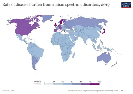 - ↑ Jiang, Xinhong; Chen, Xianrui; Su, Jingying; Liu, Nan (29 May 2024). "Prevalence of autism spectrum disorder in mainland china over the past 6 years: a systematic review and meta-analysis". BMC Psychiatry. 24 (1): 404. doi:10.1186/s12888-024-05729-9. ISSN 1471-244X. Archived from the original on 26 August 2024. Retrieved 26 August 2024.