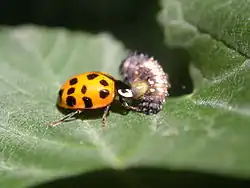 - Coccinellidae (ladybird, ladybug or lady beetles) – An alkaloid toxin in the haemolymph is exuded through the joints of the exoskeleton, triggered by mechanical stimulation (such as predator attack).[6]