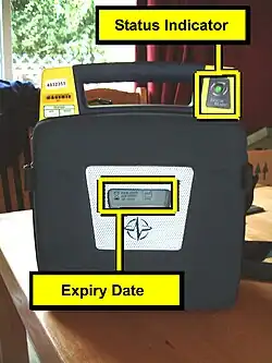 All manufacturers mark their electrode pads with an expiration date, and it is important to ensure that the pads are in date. The typical life expectancy of AED pads are between 18 and 30 months.[16] This is usually marked on the outside of the pads. Some models are designed to make this date visible through a 'window', although others will require the opening of the case to find the date stamp.[17]