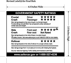 Consumer information label for a vehicle with at least one US NCAP star rating
