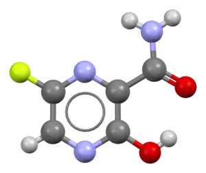 Favipiravir, sold under the brand name Avigan among others,[3] is an antiviral medication used to treat influenza in Japan.[4] It is also being studied to treat a number of other viral infections, including SARS-CoV-2.[4] Like the experimental antiviral drugs T-1105 and T-1106, it is a pyrazinecarboxamide derivative.[5]