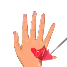 In rock climbing, a "flapper" is an injury in which parts of the skin are torn off, resulting in a loose flap of skin on the fingers.[3] This is usually the result of friction forces between the climber's fingers and the holds, arising when the climber slips off a hold.