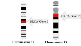 A BRCA mutation is a mutation in either of the BRCA1 and BRCA2 genes, which are tumour suppressor genes. Hundreds of different types of mutations in these genes have been identified, some of which have been determined to be harmful, while others have no proven impact. Harmful mutations in these genes may produce a hereditary breast–ovarian cancer syndrome in affected persons. Only 5–10% of breast cancer cases in women are attributed to BRCA1 and BRCA2 mutations (with BRCA1 mutations being slightly more common than BRCA2 mutations), but the impact on women with the gene mutation is more profound.[2] Women with harmful mutations in either BRCA1 or BRCA2 have a risk of breast cancer that is about five times the normal risk, and a risk of ovarian cancer that is about ten to thirty times normal.[3] The risk of breast and ovarian cancer is higher for women with a high-risk BRCA1 mutation than with a BRCA2 mutation. Having a high-risk mutation does not guarantee that the woman will develop any type of cancer, or imply that any cancer that appears was actually caused by the mutation, rather than some other factor.