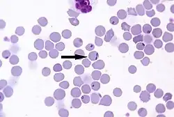 Babesia divergens is an intraerythrocytic parasite, transmitted by the tick Ixodes ricinus.[1] It is the most common cause of human babesiosis.[2] It is the main agent of bovine babesiosis, or "redwater fever", in Europe. Young cattle are less susceptible. The current emphasis in Europe on sustainable agriculture and extensification is likely to lead to an increase in vector tick populations with an increased risk of infection.[1] B. divergens is also prevalent (infection rates of 11-23%) in cottontail rabbits on Nantucket Island, Massachusetts, USA.[3]