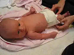 Baby powder might be applied after changing a diaper and cleaning the baby.