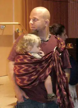 Babywearing is the practice of wearing or carrying a baby in a sling or in another form of carrier. Babywearing has been practiced for millennia[1] around the world. Babywearing is a form of baby transport which can be used for as long as mutually desired, often until toddlerhood and beyond.[2] In the industrialized world, babywearing has gained popularity in recent decades. Part of the reason for this shift is due to the influence of advocates of attachment parenting.