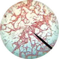- ↑ Hong HA, Khaneja R, Tam NM, Cazzato A, Tan S, Urdaci M, Brisson A, Gasbarrini A, Barnes I, Cutting SM (March 2009). "Bacillus subtilis isolated from the human gastrointestinal tract". Research in Microbiology. 160 (2): 134–43. doi:10.1016/j.resmic.2008.11.002. PMID 19068230.