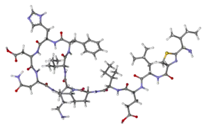 Bacitracin is composed of a mixture of related compounds with varying degrees of antibacterial activity. Notable fractions include bacitracin A, A1, B, B1, B2, C, D, E, F, G, and X.[16] Bacitracin A has been found to have the most antibacterial activity. Bacitracin B1 and B2 have similar potencies and are approximately 90% as active as bacitracin A.[17] Other bacitracin components including F and X do not appear to be extensively studied.