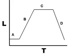 In autecological studies, the growth of bacteria (or other microorganisms, as protozoa, microalgae or yeasts) in batch culture can be modeled with four different phases: lag phase (A), log phase or exponential phase (B), stationary phase (C), and death phase (D).[4]