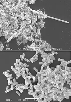 Oxidative stress, nutrient limitation, DNA damage and antibiotic exposure are examples of stressors that cause bacteria to halt septum formation and cell division. Filamentous bacteria have been considered to be over-stressed, sick and dying members of the population. However, the filamentous members of some communities have vital roles in the population's continued existence, since the filamentous phenotype can confer protection against lethal environments.[3] Filamentous bacteria can be over 90 μm in length[4] and play an important role in the pathogenesis of human cystitis. Filamentous forms arise via several different mechanisms.[5]