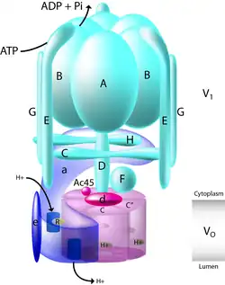 - 1 2 3 4 5 6 Cotter K, Stransky L, McGuire C, Forgac M (October 2015). "Recent Insights into the Structure, Regulation, and Function of the V-ATPases". Trends in Biochemical Sciences. 40 (10): 611–622. doi:10.1016/j.tibs.2015.08.005. PMC 4589219. PMID 26410601.