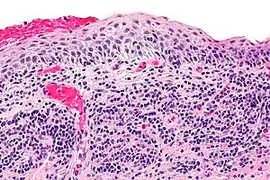 Balanitis plasmacellularis is a skin condition characterized by a benign inflammatory skin lesion characterized histologically by a plasma cell infiltrate.[1][2]: 657 [3]
