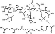 Bambermycin (flavomycin) is a complex of antibiotics obtained from Streptomyces bambergiensis and Streptomyces ghanaensis used as a food additive for beef cattle, dairy cattle,[1] poultry and swine.[2] The complex consists mainly of moenomycins A and C.[3]
