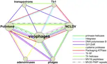 - ↑ Yutin, Natalya; Raoult, Didier; Koonin, Eugene V (2013). "Virophages, polintons, and transpovirons: a complex evolutionary network of diverse selfish genetic elements with different reproduction strategies". Virology Journal. 10 (1): 158. doi:10.1186/1743-422X-10-158. PMC 3671162. PMID 23701946.