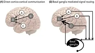 42. Hélie S, Ell SW, Ashby FG (March 2015). "Learning robust cortico-cortical associations with the basal ganglia: an integrative review". Cortex; A Journal Devoted to the Study of the Nervous System and Behavior. 64: 123–135. doi:10.1016/j.cortex.2014.10.011. PMID 25461713. S2CID 17994331.