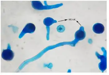 - ↑ 5.0 5.1 5.2 5.3 5.4 5.5 5.6 5.7 Gugnani, H, C (1992). "A review of zygomycosis due to basidiobolus ranarum". European Journal of Epidemiology. 15 (10): 923–929. doi:10.1023/A:1007656818038. PMID 10669127.
