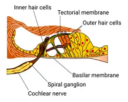 - ↑ Robles L, Ruggero MA (July 2001). "Mechanics of the mammalian cochlea". Physiological Reviews. 81 (3): 1305–52. doi:10.1152/physrev.2001.81.3.1305. PMC 3590856. PMID 11427697.