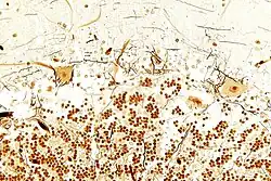 Basket cells are inhibitory GABAergic interneurons of the brain, found throughout different regions of the cortex and cerebellum.[1]