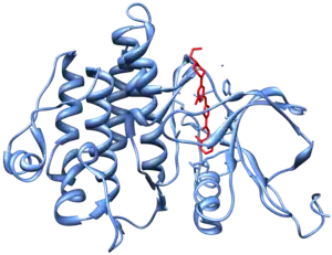- ↑ 10.0 10.1 10.2 Eck, M.; Manley, P. (2009). "The interplay of structural information and functional studies in kinase drug design: insights from BCR-Abl". Current Opinion in Cell Biology. 21 (2): 288–295. doi:10.1016/j.ceb.2009.01.014. PMID 19217274.