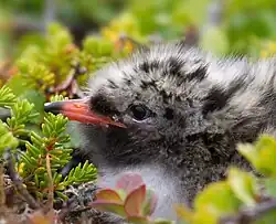 Gapes of juvenile altricial birds are often brightly coloured, sometimes with contrasting spots or other patterns, and these are believed to be an indication of their health, fitness and competitive ability. Based on that, the parents decide how to distribute food among the chicks in the nest.[35] Some species, especially in the families Viduidae and Estrildidae, have bright spots on the gape known as gape tubercles or gape papillae. These nodular spots are conspicuous even in low light.[36] A study examining the nestling gapes of eight passerine species found that the gapes were conspicuous in the ultraviolet spectrum (visible to birds but not to humans).[37] Parents may, however, not rely solely on the gape coloration, and other factors influencing their decision remain unknown.[38]