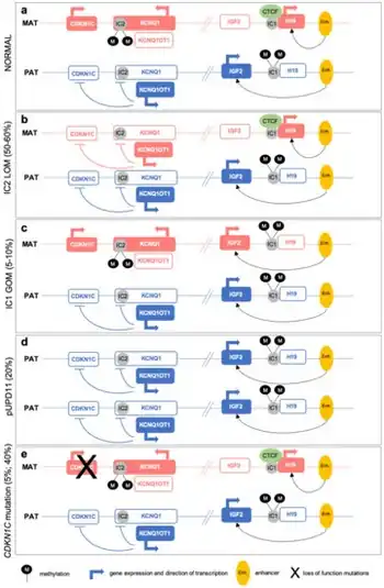 Genes involved are IGF-2, CDKN1C, H19, and KCNQ1OT1.[19]