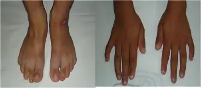 - ↑ Hoyme HE, Seaver LH, Jones KL, Procopio F, Crooks W, Feingold M (October 1998). "Isolated hemihyperplasia (hemihypertrophy): report of a prospective multicenter study of the incidence of neoplasia and review". American Journal of Medical Genetics. 79 (4): 274–8. doi:10.1002/(SICI)1096-8628(19981002)79:4<274::AID-AJMG8>3.0.CO;2-M. PMID 9781907.
