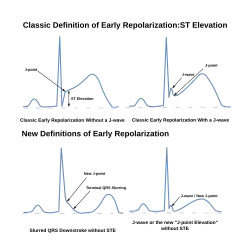 - ↑ Antzelevitch C, Yan GX, Viskin S (April 2011). "Rationale for the use of the terms J-wave syndromes and early repolarization". Journal of the American College of Cardiology. 57 (15): 1587–1590. doi:10.1016/j.jacc.2010.11.038. PMC 3073061. PMID 21474038.