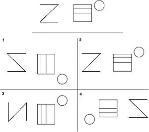 The Benton Visual Retention Test is composed of 3 sets, or forms, of 10 designs (each 8.5 × 5.5 in.) that measure the examinee's visual and memory abilities as well as a set of alternate designs for repeated tests.[4] The examinee is given a booklet containing 10 blank pages on which they reproduce the designs. These design are used to gauge the examinee's visual perception and memory, and can be administered five different ways. These five methods are as follows:[5]