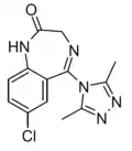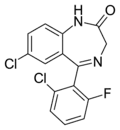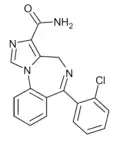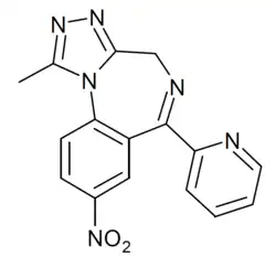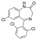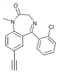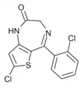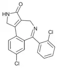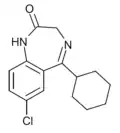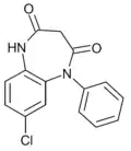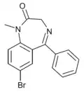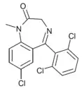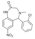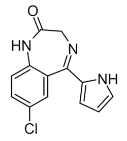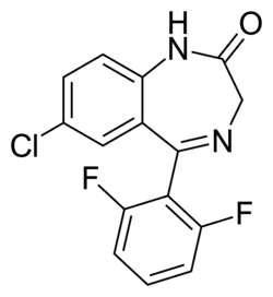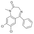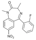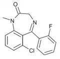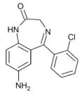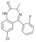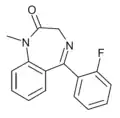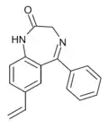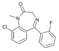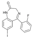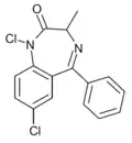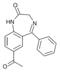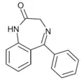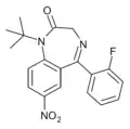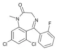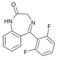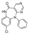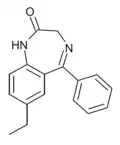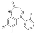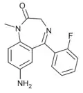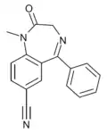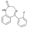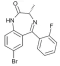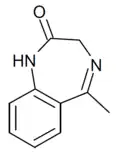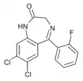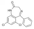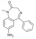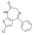 - ↑ Blair T, Webb GA (September 1977). "Electronic factors in the structure-activity relationship of some 1,4-benzodiazepin-2-ones". Journal of Medicinal Chemistry. 20 (9): 1206–1210. doi:10.1021/jm00219a019. PMID 926122.