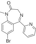 | Phenazepam | Phenazepam, Phenzitat | Research chemical | 1.5–4 | 60 | anxiolytic, anticonvulsant | ||