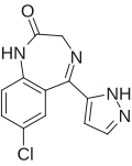 | Pyrazolam | Research chemical | 0.25, 0.5, 1 | 1–1.5 | 16–18[32] | anxiolytic, amnesic | ||