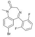 - ↑ Moosmann B, Huppertz LM, Hutter M, Buchwald A, Ferlaino S, Auwärter V (November 2013). "Detection and identification of the designer benzodiazepine flubromazepam and preliminary data on its metabolism and pharmacokinetics". Journal of Mass Spectrometry. 48 (11): 1150–1159. Bibcode:2013JMSp...48.1150M. doi:10.1002/jms.3279. PMID 24259203.