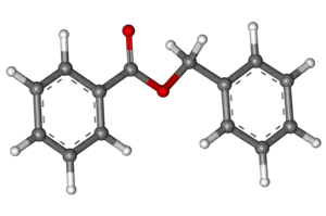 Benzyl benzoate is an organic compound which is used as a medication and insect repellent.[2] As a medication it is used to treat scabies and lice.[3] For scabies either permethrin or malathion is typically preferred.[4] It is applied to the skin as a lotion.[3] Typically two to three applications are needed.[3] It is also present in Balsam of Peru, Tolu balsam, and in a number of flowers.[5]