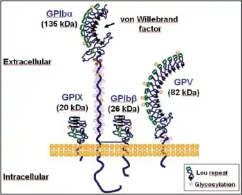 - ↑ Kanaji, T; Russell, S; Ware, J (Sep 15, 2002). "Amelioration of the macrothrombocytopenia associated with the murine Bernard-Soulier syndrome". Blood. 100 (6): 2102–7. doi:10.1182/blood-2002-03-0997. PMID 12200373. S2CID 25130678.