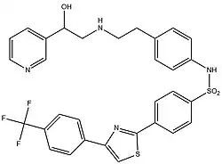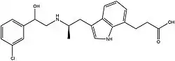 Has a good affinity for β3-AR but very low affinity for β1- and β2-AR. The methyl group on the right hand side is connected to an isomeric carbon and the different isomers have a different affinity for the β3 receptor