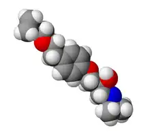 Levobetaxolol is a drug used to lower the pressure in the eye in treating conditions such as glaucoma. It is marketed as a 0.25 or 0.5% ophthalmic solution of levobetaxolol hydrochloride under the trade name Betaxon. Levobetaxolol is a beta-adrenergic receptor inhibitor (beta blocker).