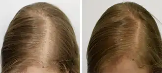 Improvement in scalp hair density in a 37-year-old woman treated with 25 mg/day bicalutamide monotherapy.[59] Left is before treatment and right is after 6 months of therapy.[59]