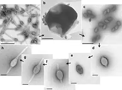 - 1 2 Wang, F; Cvirkaite-Krupovic, V; Vos, M; Beltran, LC; Kreutzberger, MAB; Winter, JM; Su, Z; Liu, J; Schouten, S; Krupovic, M; Egelman, EH (2022). "Spindle-shaped archaeal viruses evolved from rod-shaped ancestors to package a larger genome". Cell. 185 (8): 1297–1307.e11. doi:10.1016/j.cell.2022.02.019. PMC 9018610. PMID 35325592.