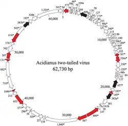- ↑ Prangishvili, D., Vestergaard G, Häring M, Aramayo R, Basta T, Rachel R and Garrett RA (2006) Structural and genomic properties of the hyperthermophilic archaeal virus ATV with an extracellular stage of the reproductive cycle. J. Mol. Biol. 359, 1203–1216